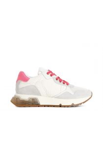 scarpe running donna in nylon e pelle scamosciata bianco/fuxia