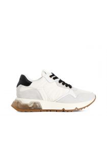 scarpe running donna in nylon e pelle scamosciata bianco/nero
