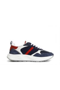 Scarpe running uomo multicolor in pelle e tessuto con nuova suola caratterizzata da un gioco di scavature che rendono la calzatura unica nel suo genere.