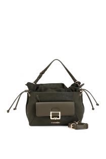 Secchiello di medie dimensioni con doppio materiale con taschino sul davanti e chiusura con fibbia di metallo