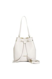 Secchiello con coulisse e laccio con nappine. tasca aperta davanti. doppia tracolla corta e lunga con moschettoni.