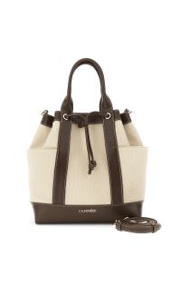 secchiello con manici effetto canvas con rifiniture in effetto pelle a contrasto moro/beige