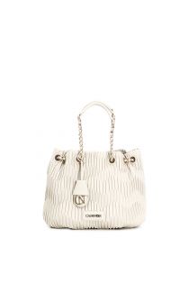secchiello con plissettatura e catena con patch porta placchetta e charm cafènoir avorio