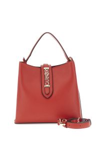secchiello effetto pelle con occhielli rivestiti e passante in metallo rosso