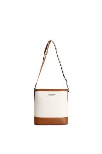 Secchiello in canvas naturale profili a contrasto. loghi in materiale plastico e tracolla a nastro regolabile. tasca posteriore aperta e rivetti logati smaltati.