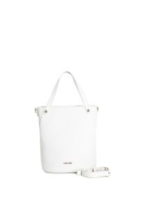 Borsa a secchiello in raffinato materiale granato dettagli con borchie logate e tracollina regolabile e removibile per uno stile pratico ed elegante.