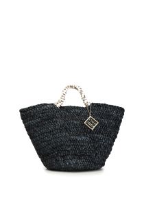 shopping bag a cesto in paglia con ciondolo cafènoir nero