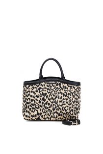 Shopping bag da portare a mano realizzata in tessuto maculato con bordura imbottita