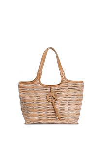 Shopping bag a spalla con pannello frontale in rete intrecciata e logo cafènoir con nodino a cravatta. pratica chiusura con zip stile moderno per ogni occasione.