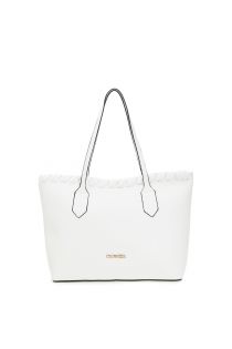 Shipping bag rifinita da una importante infilatura in similpelle sul bordo.