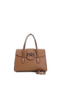 shopping bag con pattina , applicazione di morsetto verniciato marrone