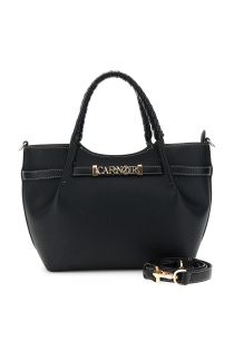 shopping bag con pieghe effetto pelle con grana e rifiniture in similpelle nero