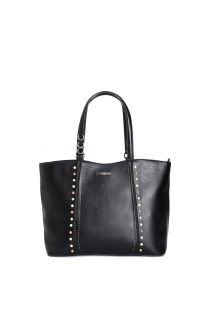 shopping bag con pietre cabochon, rivetti e manici imbottiti eleganti nero