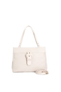 Shopping bag in ecopelle con stampa monogram embossed tasca frontale con fibbia occhielli rinforzati e tracolla removibile. tramezza interna con zip per massima praticità.