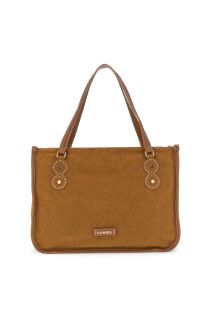 shopping bag effetto camoscio con microrivetti e cabochon con pietre decorative marrone