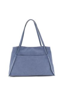 shopping bag effetto camoscio, tasca frontale pratica, logo in alta frequenza avio