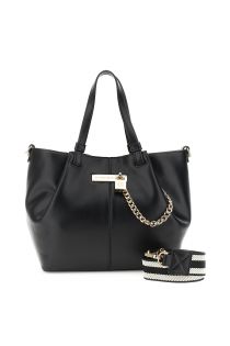 shopping bag effetto pelle accessorio in metallo con lucchetto e catena nero