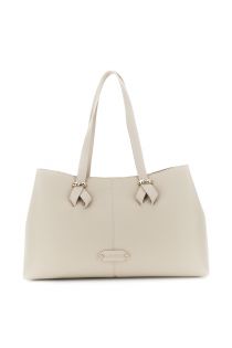shopping bag effetto pelle martellata con dettagli lisci a contrasto nude