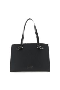 shopping bag effetto saffiano con manici a nodo e passante in metallo nero