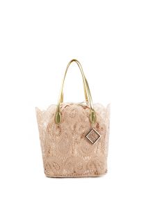 shopping bag in pizzo con sacchetto interno in tono cipria