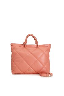 Shopping bag in materiale morbido con trapuntatura romboidale e manico a catena con infilature.