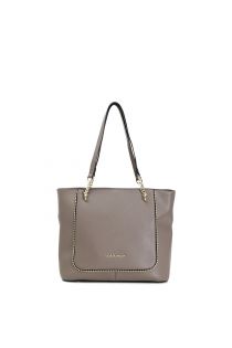 Shopping bag semirigida impreziosita da una catena di microballs che decora il quadrante anteriore