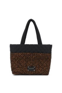 shopping bag trapuntata in nylon con stampa floccato caramello/nero
