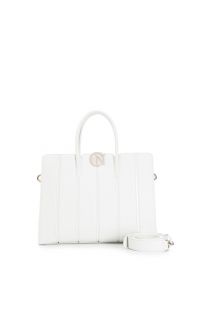 Tote rigida con lavorazione "a teli". logo cafènoir a contrasto. manici tubolari. chiusura con cerniera. borsa dotata di tracolla.