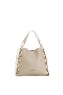 Shopping in materiale martellato con catena ed infilatura. chiusura magnetica automatica. tramezza con zip.