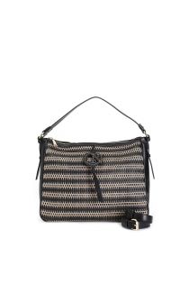Borsa a spalla in rete intrecciata con logo cn infilato a mano e dettaglio nodino a cravatta. dotata di tracolla removibile e chiusura con zip perfetta per ogni occasione.