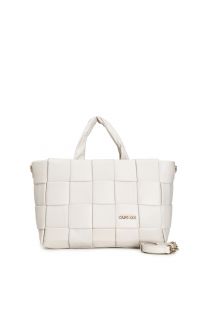 Shopping con intreccio grande leggermente imbottito chiusura con zip manici morbidi per portabilità a spalla e tracolla in dotazione che permette una portabilità crossbody.