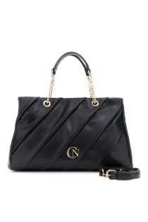 Shopping in similpelle con plissettatura frontale tasca con zip sul retro e tramezza interna. manici imbottiti con catena logo cafènoir in metallo e tracolla removibile.