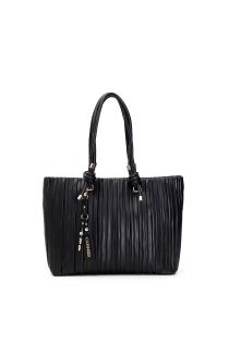 Shopping in morbido materiale con caratteristica plissettatura ondulata e manici annodati con colore in contrasto arricchita da accessorio pendente Cafènoir