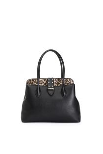Shopping rigido con tramezza con zip in fantasia stampata. borsa arricchita di fibbia con microborchie dorate.