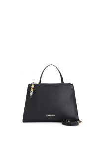 Shopping dalla struttura rigida in saffiano. tiralampo con letterine personalizzate e colorate. borsa con doppia cerniera e provvista di più scomparti. manico unico e tracolla regolabile.