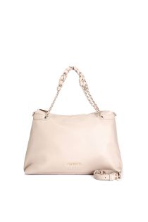 Shopping morbida con manici in catena con infilatura impugnatura intrecciata dettagli con occhielli in metallo e tracolla removibile. stile raffinato e funzionale.