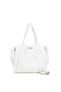 shopping morbida con pieghe e chiusura con calamita e coulisse laterali bianco