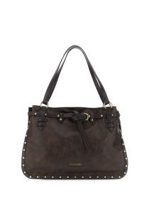 Shopping bag morbida in similpelle effetto vissuto e sfumato con bordatura decorata da rivetti. cinghia con fibbia dettaglio lettering in metallo per un tocco grintoso e distintivo.