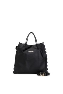 Shopping in similpelle dal gusto romantico rifinita con merletto in pizzo laserato