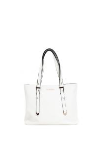 shopping rigida con chiusura zip in cima e manici tipo fibbia bianco