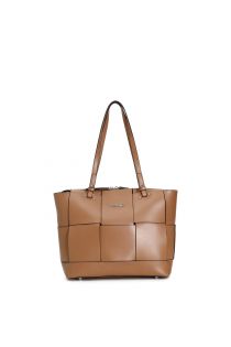 shopping sfoderata con intreccio con fasce larghe cuoio