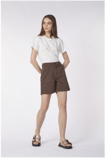 Shorts in bull denim tinto capo. il davanti è arricchito da piccoli strass in tono