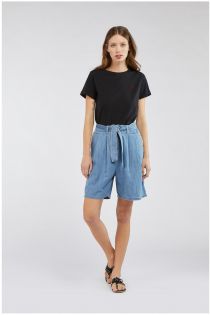 shorts in tela chambray con bottone gioiello