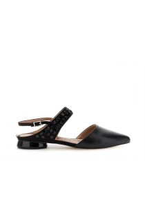 slingback in nappa e microfibra con multistrass nero/nero