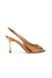 slingback open-toe in pelle laminata bronzo