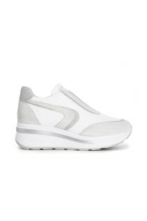 Sneakers modello slip-on in pelle con inserti glitter. suola con zeppa bicolor di 40mm con logo embossed.
