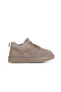 Sneakers da donna allacciata in pelle scamosciata. calzatura con riporti in pelle scamosciata glitterata.