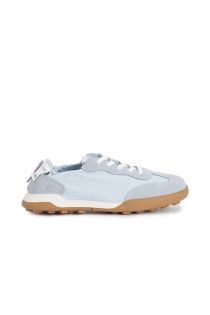 sneakers allacciata in tessuto nylon e pelle scamosciata azzurro
