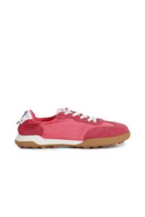 sneakers allacciata in tessuto nylon e pelle scamosciata fuxia