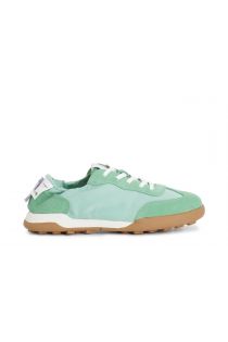 sneakers allacciata in tessuto nylon e pelle scamosciata verde